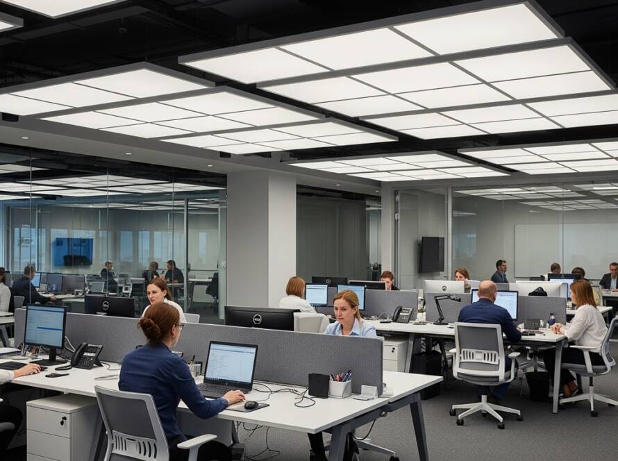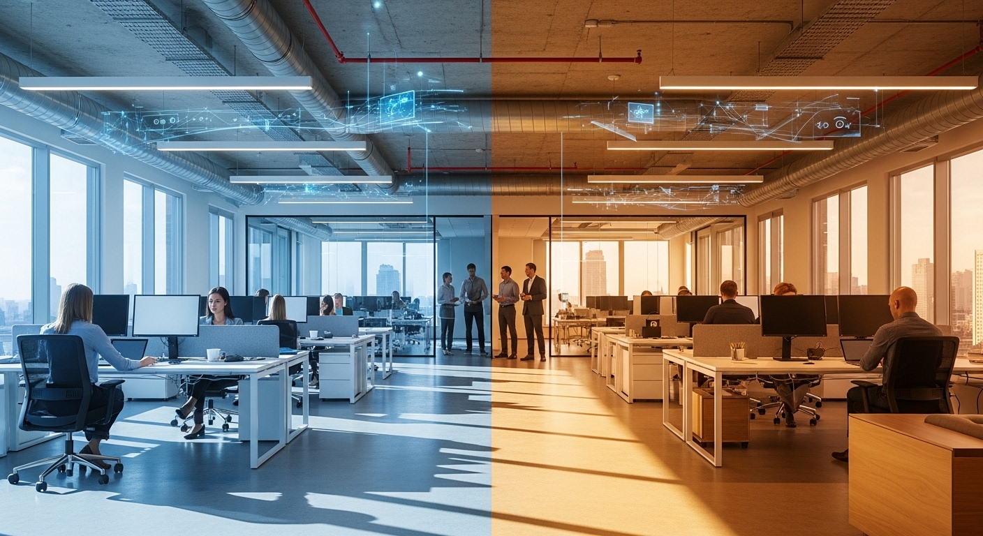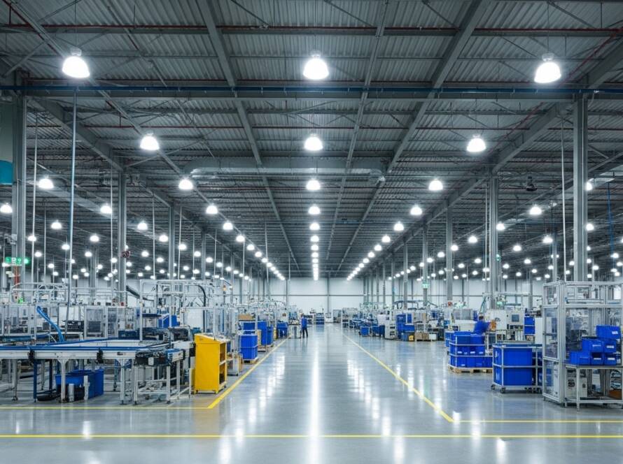 Inteligentne systemy oświetleniowe LED z technologią AI dla hal produkcyjnych, magazynów i biur. Zwrot kosztów w 18-24 miesiące.